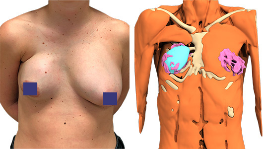 - ein anderes Standard-Silikongel-Implantat wird in einer subklavikulären Position in der Achselhöhle platziert.