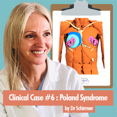 Im Alter von 33 Jahren suchte die Patientin Dr. Schirmer auf, weil das Ergebnis der ersten Operation als unzureichend empfunden wurde. Die klinische Untersuchung zeigte eine persistierende Deformität, die durch das Fehlen des Musculus pectoralis major und eine retraktile Hülle, die das Brustimplantat deformierte, verursacht wurde. Die Narbe ist unansehnlich.