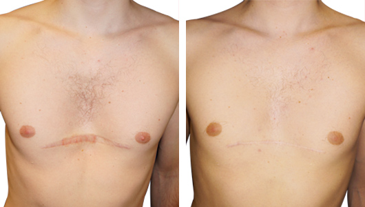 - Bei der Operation kann die Qualität des Ergebnisses durch die Korrektur der zu deutlich sichtbaren dystrophilen Narben verbessert werden.