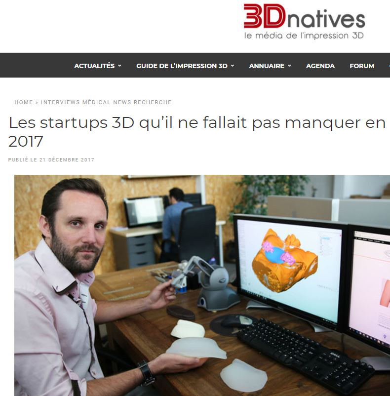 AnatomikModeling is one of start up that should not be missed according to the specialised website in 3D technologies: 3D Natives. Found the article in the following link : "Les startups 3D qu’il ne fallait pas manquer en 2017".